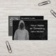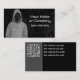 Un diseño monocromo en grises y negros, con un gráfico de hackers cibercriminales o éticos encapuchados, sin rostro, hechos de lenguaje de máquina. La parte frontal tiene un efecto ligeramente grisáceo y cuenta con 2 líneas de texto personalizado. Hay otras cuatro líneas que se pueden personalizar al revés, además de que puedes agregar tu código QR a los clientes directos a tu sitio web de negocios.