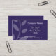 El fondo morado profundo y la sobrecubrimiento elegantemente simple de la hoja hacen de ésta la tarjeta perfecta para cualquier número de negocios, incluyendo peluquería, spa, salón de uñas, boutique de moda, psicólogo, profesor, vendedor, tienda de alimentos para la salud, iglesia, y otros que quieren transmitir una impresión elegantemente serena y nutritiva.