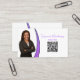 Tarjeta De Visita Purple Sliver Faux Purpurina Photo QR Professional
