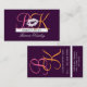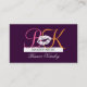 Tarjetas de visita púrpuras elegantes del artista de maquillaje con dos letras y el arte gráfico de los labios para componer un logotipo del monograma para su negocio. La tarjeta está libre de modificar para requisitos particulares pero el diseño no se puede copiar y utilizar para los propósitos comerciales. Elke Clarke ©2011. Substituya los artículos de la plantilla por su información del negocio y cambie los colores para hacerle su propia tarjeta de visita única del negocio.