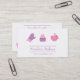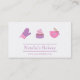 Deje una impresión con los clientes con esta tarjeta de visita elegante, elegante, dulce, minimalista, contemporánea y moderna de la panadería en la paleta de color de rosado femenino y de la púrpura. El diseño tiene 3 círculos cada uno con un artículo de la hornada que incluya una manopla púrpura del horno, una magdalena de mirada deliciosa con helar rosado adornado con los mini corazones y un bol grande rosado con bate. Perfeccione para las panaderías, los chefs de repostería, los decoradores de la torta, los cafés, las cafeterías y los lugares, negocios de la confitería, estudios que cuecen, hornada y los profesores de escuela y más el cocinar. Personalice fácilmente con los detalles del negocio.