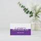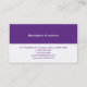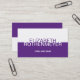 Simple y moderno es la mirada en esta tarjeta de visita. Un negocio o un nombre personal es dominante en el frente de la tarjeta con la información de contacto principal, un número de teléfono o Web site, golpeando fuera del panel púrpura abajo. Añada una descripción de servicios en el revés en el top con toda la información de contacto que imprime abajo en violeta. Disponible en colores alternos.
