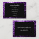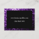 Personalice y personalizar elegante tarjeta de negocios falsa y brillante. Los hermosos purpurinas brillantes de color morado glamoroso brillan. ¡Foto de chispas moradas, no purpurina real!