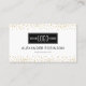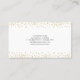 Tarjetas de visita personalizadas con un fondo blanco de moda, el logotipo de su empresa, el purpurina de oro y los detalles de la empresa.