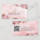 Moderna y elegante tarjeta profesional de negocios con código QR con agate rosa, mármol rosa y venas purpurinas de oro finas y acentos brillantes con elegantes iniciales de caligrafía monograma con toques en su elección de colores (se muestran en oro y negro). La parte posterior incluye un código QR opcional y su información de contacto. CAMBIOS: cambie cualquier tipo de letra de texto, color, tamaño y ubicación, o elimine el código QR en EDIT. ASISTENCIA: Para obtener ayuda con la modificación o personalización del diseño o si desea coordinar elementos, póngase en contacto con el diseñador ANTES DE ORDENAR a través de la ficha MENSAJE de charla de Zazzle o envíe un correo electrónico a makeitaboutyoustore@gmail.com.