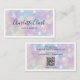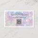 Moderna y de moda, esta tarjeta holográfica de negocios incluye su nombre o nombre de negocio en la tipografía de guiones con un elegante fondo de purpurina iridiscente. Esta tarjeta de visita es perfecta para cualquier profesional de la industria de la belleza y más allá (especialmente maquillador, peluquero, uñas, dueña de salón de belleza, esteticista, esteticista, etc.). Puedes personalizar el frente con tu nombre y título (o dirección/ubicación del sitio web) y agregar tu información de contacto (incluyendo la dirección del sitio web y las cuentas de medios sociales), el código QR escaneado en la parte posterior.