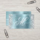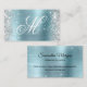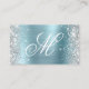 Crea tu propio purpurina de plata brillante falso y tarjetas de negocios de Relieve metalizado satinado azul claro. El frontal presenta un lujoso monograma de caligrafía blanca. Se puede personalizar el color y el estilo del tipo de letra. Hay espacio para más información de contacto en el reverso. Un diseño jovial para los planificadores de bodas o técnicos de belleza. Todos los gráficos y elementos de este diseño se imprimirán como una foto digital.