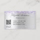 Un falso fondo metálico plateado. Decorado con polvo falso purpurina de color violeta y lavanda. Personalice y agregue su nombre y un texto al frente. Atrás: Plantillas para tu nombre, título, número de teléfono y tu propio código QR.