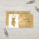 Tarjeta de visita atractiva de la costurera del vestido, con los gráficos de un vestido de cóctel purpurinoso del oro, contra un fondo blanco y dorado, con el purpurina del oro mirando acentos. Personalice el texto para adaptarse a sus necesidades del negocio. Un precioso se destaca la tarjeta para su negocio de adaptación.