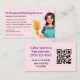 Promote your cleaning business with this modern pink business card featuring a friendly maid illustration and an integrated QR code for instant scheduling.