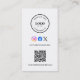 Promote your brand effortlessly with this modern custom QR code business card designed for small businesses entrepreneurs and creatives. Featuring a clean minimalist layout this design allows you to personalize with your logo social media handles and a scannable QR code that directs customers instantly to your website online shop or contact page.