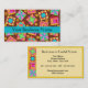 Haga una impresión con esta tarjeta de visita para su negocio de colchas, tienda o hermandad. Coordenadas con el titular de la tarjeta de visita correspondiente. Esta tarjeta de visita incluye un diseño de bloques de tejido basado en el arte original de Phyllis Dobbs. El diseño presenta bloques de tejido patchwork favoritos, como una cabaña de troncos, molinillo, estrella y bloques únicos creados en colores vivos y dinámicos sobre un fondo marrón cálido. Los colores son rosa fucsia, naranja, azul turquesa verde azulado, amarillo, rojo, marrón y verde. Personalizable completo para toda su información de contacto y negocios.