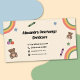 A professional business card for a child care service. This card featuring colorful illustrations of rainbows, building blocks, teddy bears, stars and crayons. It might work well for any activity involving children, including tutoring, nanny and babysitting.