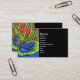 Esta tarjeta de visita tiene un cuadro de una sapo azul intenso y profundo con manchas negras sentada sobre una plataforma de lirio verde en agua rodeada de hierba verde alta con cañas amarillas. Personalizar su información con las plantillas.