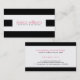 Elegante y sencillo patrón clásico de rayas blancas y negras. Bonito ambiente moderno con 3 grandes rayas en frente y rayas en la parte trasera. Personalizable completo de la plantilla de tarjeta de negocios de doble cara. Fuente de color rosa sugerida.