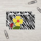 ¡Usted amará esta mariquita linda, roja con la flor amarilla en diseño negro y blanco del modelo de las rayas de la cebra! ¡Le invitamos a a nuestra tienda, tienda del cumpleaños del niño, que vea este diseño temático de la mariquita fresca en muchos más grandes productos adaptables, incluyendo invitaciones bonitas, y tarjetas de cumpleaños adorables!