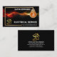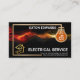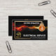 Un falso marco de circuito eléctrico de cobre está alimentado por un rayo eléctrico rojo que ilumina una bombilla con herramientas de reparación dentro. Justo al lado de la bombilla encontrarás tu prestigioso nombre. Cerca de la base de la tarjeta se encuentran el nombre de su negocio y los datos de contacto con un logotipo de electricista "carta-e" dorado que puede usar. Al dorso, el logotipo de la carta dorada e está en la parte superior seguido de su prestigioso nombre, detalles de contacto y una opción de lema para dar a conocer sus servicios. Una gran tarjeta creativa para que los electricistas la usen.