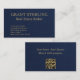 Tarjeta De Visita Real Estate Broker Navy Blue Gold Linen QR Code