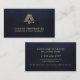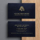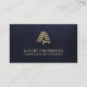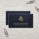 Professional, elegant realtor real estate agent modern minimalist luxury upscale dark navy blue leather look (PRINTED) business card with faux gold metallic house and key logo.