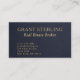 Tarjeta De Visita Real Estate Navy Blue Gold Slate Stone QR Code