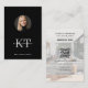 Un hermoso diseño de tarjeta de negocios de fotografía moderna y negra con código QR. Una forma sencilla y profesional de presentar tu negocio. Manejo de medios sociales incluido en el diseño de esta tarjeta de visita para uso. Personalice sus detalles para crear su propia tarjeta de visita única.