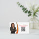 Hay solo una pequeña cantidad de brillo naranja falso en la parte delantera y trasera del diseño de la tarjeta de presentación. La parte delantera presenta un marcador de posición de foto a la izquierda con el nombre y título de la plantilla más un código QR a la derecha. La parte trasera incluye un diseño coordinado con campos de texto para el nombre y detalles de la empresa. Reemplace la foto del marcador de posición con su fotografía en formato vertical y el enlace para un código QR. Personalice los campos de la plantilla o edítelos utilizando la herramienta de diseño para seleccionar un estilo de fuente, tamaño y color que le guste. Utilice el enlace del código QR para enviar a los clientes potenciales a su sitio web, página de reseñas, fotos u otra página relacionada con su negocio. La foto del marcador de posición es cortesía de pixabay.com.