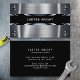 Esta tarjeta de visita profesional presenta un diseño elegante de metal plateado cepillado acentuado con detalles rebitados para un estilo industrial audaz. La banda negra limpia destaca su nombre o negocio, lo que facilita destacarse. Perfecto para profesionales en construcción, ingeniería, contratación y otros oficios. Un diseño fuerte y confiado ideal para aquellos que buscan causar una impresión duradera.
