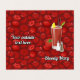 Un vaso de cóctel de Bloody Mary con un fondo rojo sin fisuras. Caja de recetas extraíble. campos de texto personalizado.