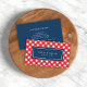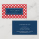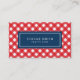 Tarjeta de visita con un patrón de gingham rojo con un centro azul en la parte delantera. La tarjeta tiene una parte posterior azul. Esta moderna tarjeta de visita es ideal para diversas profesiones como interiorista, chef, panadero, bloguero, etc. Personalízalo reemplazando el texto del marcador de posición. Para obtener más opciones, como cambiar el tipo de letra y su tamaño/color o el espaciado entre letras, haga clic en el botón "Personalizar". *Tenga en cuenta que la marca de agua Zazzle que aparece en la vista previa del zoom NO aparecerá en el producto impreso final. © Rosewood y Citrus