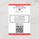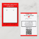 Handmade Jewelry by Name in white against bright red background. (Name will appear on front and backside. Click Personalize if further edits are needed). Crafted with Love written in black script (keep or insert short tagline, or delete to leave area blank). Two Small Circles against white and black framed background. NOTE: Circles are not pre-cut, you will need to use a small hole punch to make clean cut holes, to then place your Earrings in. Backside has small red heart. Insert telephone number, email address, website, social media handle, as needed. Insert Your Business QR Code for customers to Shop 24/7, or deleteas needed. Original Design by TamiraZDesigns.