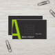 Diseño gráfico original que muestra una letra grande A y una cuadrícula geométrica cuadrada. Una tarjeta de visita moderna con un elegante fondo negro para usar en tu empresa. Personalizar de la información inicial y de la empresa. Adecuado para otras profesiones también.