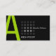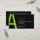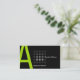 Una tarjeta de visita moderna para un arquitecto con un fondo negro elegante y un diseño gráfico original que muestra una letra grande A y una cuadrícula geométrica cuadrada. Personalizar el Inicial para acomodar cualquier profesión y añadir información de la empresa.