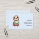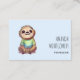 Tarjetas de visita con un adorable ilustracion con una pereza de aspecto alegre usando una camiseta verde. Sentado en una posición relajada de meditación.