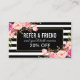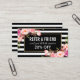 Tarjeta De Visita Remisión a raya blanca y negra rosa floral