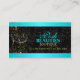 diseños 2013 del miembro de la jet-set del ©. Nuestra tarjeta de visita elegante incorpora una decoración elegante de los remolinos del oro, elementos del diseño de la turquesa y un fondo negro del damasco. Una tarjeta de visita hermosa para un negocio de lujo. Todos los elementos del diseño se pueden mover, volver a clasificar según el tamaño o suprimir individualmente para adaptarse a usted. OBSERVE POR FAVOR QUE LOS DISEÑOS DE LA TURQUESA Y DEL ORO ESTÁN IMPRESOS Y RELIEVE METALIZADO NO REAL.
