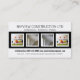 Destaque cuatro fotografías de su trabajo en este diseño quebradizo y limpio, llamativo de la tarjeta de visita para los desarrolladores o compañías relacionadas los comercios. Fondo blanco con fácil leer el texto negro, y 4 fotos de la muestra enmarcadas en blanco en una raya negra del alto contraste. Fácilmente personalizable para adaptarse a cualquier profesión.