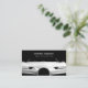 Un diseño sencillo y elegante de tarjetas de visita con fondo negro y silueta de un coche de lujo. Personalizar los detalles y hazlo propio. Un diseño ideal para el detalle de coches, lavado de coches, limpieza de coches, mecánica, reparación de automóviles, ingeniero, reparación y servicio de motores de coches, piezas de coches, etc.