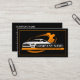 Reparación automática profesional, tarjeta de presentación mecánica automática. Con un diseño elegante de coches. Naranja y negro. Personalice y agregue los detalles de su negocio. Agregue su código QR a su sitio web.
