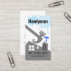 El diseño presenta un diseño de techos domésticos que está a punto de comenzar trabajos correctivos de manualidades. La bandeja de pintura de la parte superior contiene el nombre de negocios "Handyman" que puede cambiar. Hacia la base tienes el contacto telefónico y tu prestigioso nombre. Al dorso, en una cubierta blanca, en la parte superior hay un logotipo de herramientas de mano doradas que se pueden usar. A esto le sigue su prestigioso nombre, los detalles de contacto y una opción de eslogan para dar a conocer sus servicios. Una gran tarjeta atractiva para el hombre a mano y los contratistas de construcción a usar.