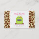 Una tarjeta de visita para el chef o el restaurante que incluye un ilustracion de una estufa retro verde brillante delante. El fondo en ambos lados es la letra de jirafa. Personalice el texto en la parte delantera y posterior con su información de contacto.