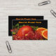 Los clientes se reunirán a su restaurante cuando ven esta tarjeta de visita. El frente exhibe las semillas rojas de la granada, las rebanadas anaranjadas y las hojas de menta verdes. La parte posterior tiene las peras, las flores y la mayor parte del texto pertinente. La fotografía original de la bella arte digital se ha aumentado para producir un modelo abstracto impresionista. Todo el texto se puede modificar para requisitos particulares para su negocio especial.