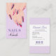 Resumen Tarjeta de presentación de artista de uñas de mano púrpura