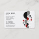 Una plantilla de tarjeta de perfil/empresa con un motivo abstracto formado por formas de media luna y puntos circulares que se ejecutan horizontalmente. Nombre de la empresa y tipo de negocio en el frente. Nombre y todos los demás contactos al revés con una versión vertical del motivo a la derecha. Listo para ser personalizado con sus detalles, adecuado para muchos tipos de negocios.