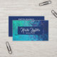 Un diseño abstracto elegante y moderno de estilo acuático y azul marino. La tarjeta de presentación de estilo tiene un cartel que coincide con el texto del nombre y se puede eliminar si prefiere la tarjeta sin ella. El título de trabajo se muestra como tarjeta de presentación de maquillaje de cosmetología artística, pero se personaliza fácilmente para muchas profesiones.