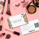Aumente su negocio de belleza con esta elegante y profesional tarjeta de visita para artistas de maquillaje. Con un moderno acento abstracto en negro y oro, este diseño transmite sofisticación y creatividad, perfecto para artistas de maquillaje, consultores de belleza o estilistas que buscan hacer una impresión duradera. En la parte delantera se muestra el nombre y el título en una fuente elegante y fácil de leer, mientras que los acentos dorados le dan un toque de lujo. La parte posterior de la tarjeta ofrece un diseño limpio para todos sus datos de contacto, incluido un espacio para un código QR escaneado que enlaza directamente a su sitio web o medio social. Esto garantiza que los clientes potenciales puedan conectarse con usted sin esfuerzo, mejorando su imagen profesional. Ideal para eventos de networking, consultas nupciales o exposiciones de belleza, esta tarjeta de visita combina funcionalidad y arte, convirtiéndolo en la herramienta perfecta para el crecimiento de su marca de belleza. Personalizar para reflejar tu estilo único y dejar que tu pasión por la belleza brille.