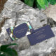 Elegante tarjeta de visita azul marino con las líneas de una piedra tallada en oro falso lleno de blanco y dos tonos turquesa.