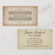 Bonito diseño retro con tonos beige. Cuenta con una placa decorativa ornamentada en el centro para su empresa, nombre de negocio o su nombre personal. El reverso tiene una apariencia de papel antiguo en la que se puede colocar toda la información de contacto.