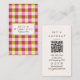 Tarjeta De Visita Retro Green Pink Checkered Gingham Girly QR Code