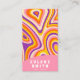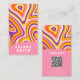 Una tarjeta de visita retro ventilado Psicodelic colorido rosado líquido. Con un patrón de groovía hecho a mano, con líneas onduladas abstractas de formas onduladas. En moda elegante naranja y rosa, beige y morado. Moderno pero con nostálgicos vibrantes colores cálidos y fuentes de groovy años setenta. Con nombre y profesión de personalizable y código QR.
