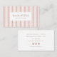 Retro chic business card design featuring a digitally hand-drawn striped pattern background paired with your business name on the front with your personalized information ( owner name, address, phone number, website and socials ) on the back. A beautiful color palette of muted pinks, cream, browns and whites shines through the whole design. Check out our store for more items from this collection.